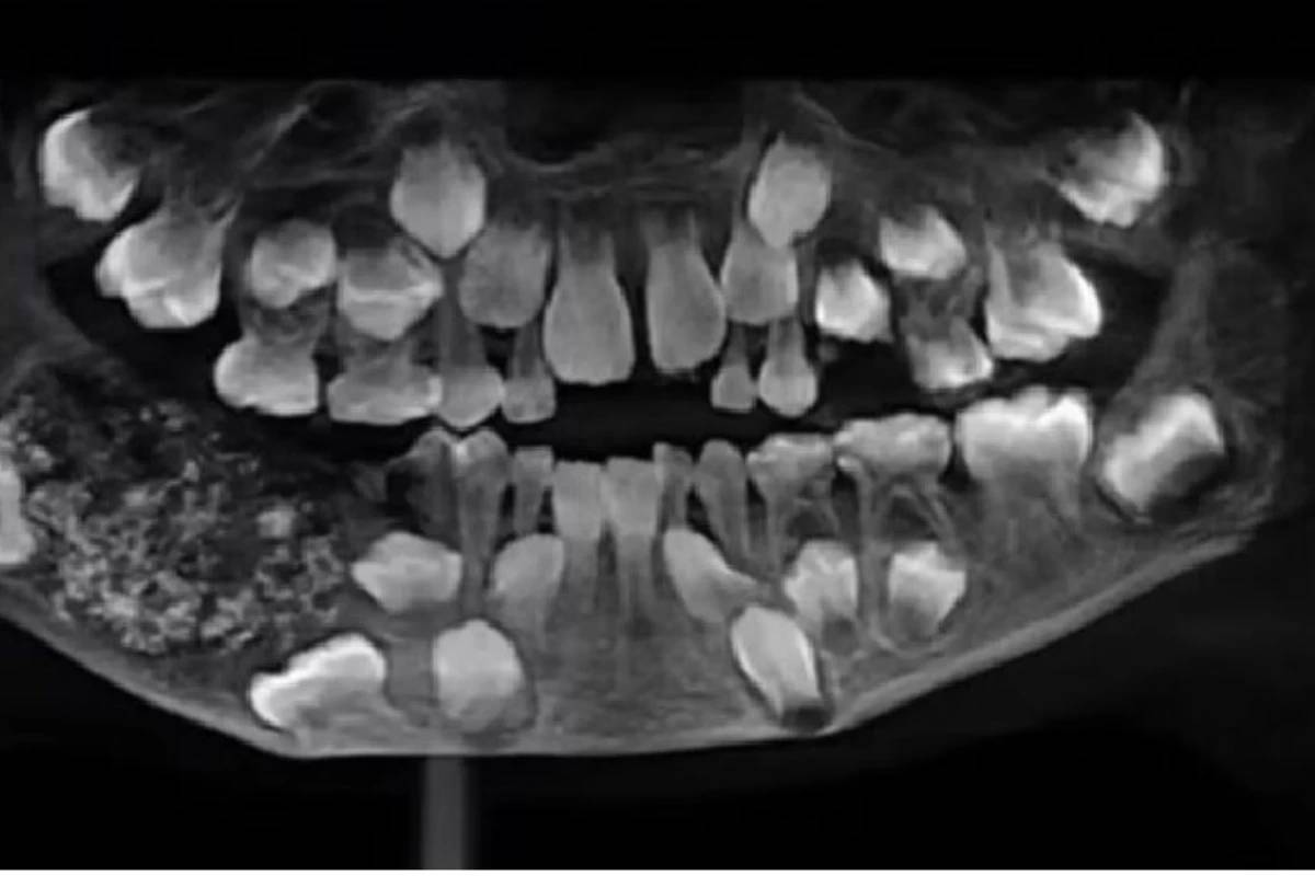 Causas do surgimento de múltiplos dentes pequenos na mandíbula do garoto